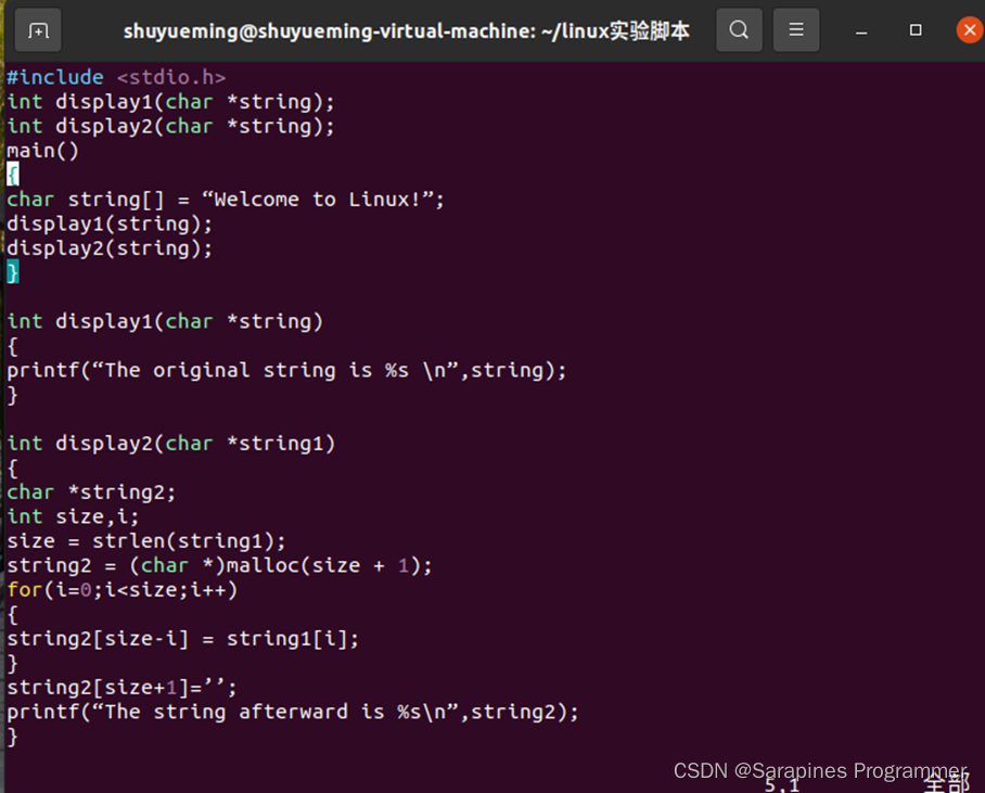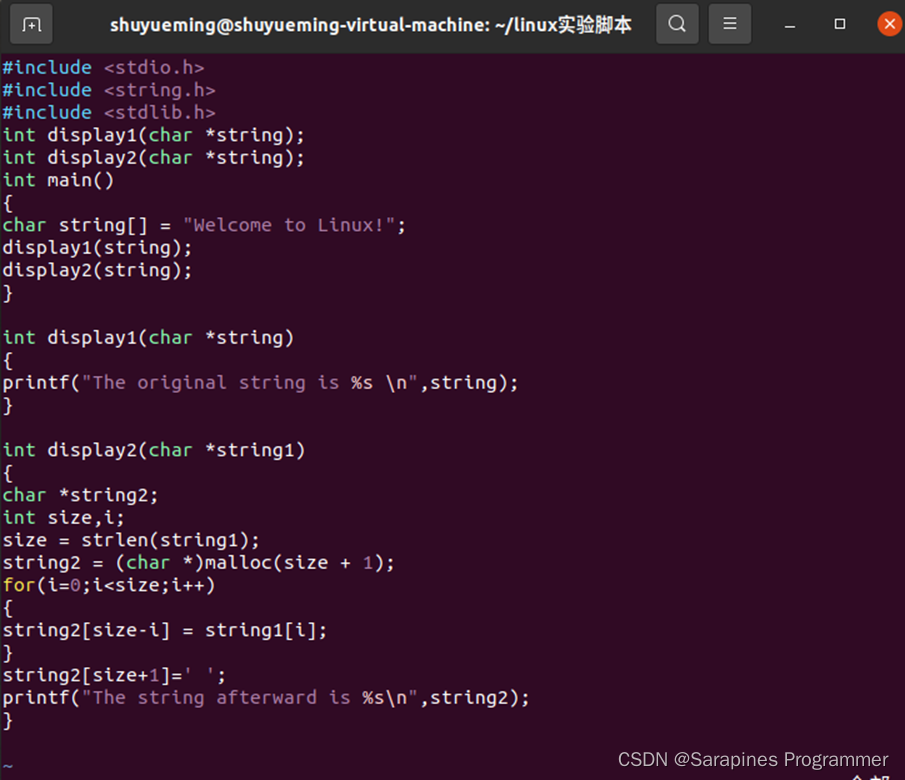 6 | char string[] = “Welcome to Linux!”;