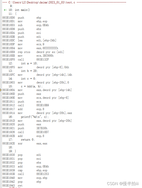 //以上汇编代码表示的变量a,b,c的创建和初始化,这就是局部的变量的创建和初始化