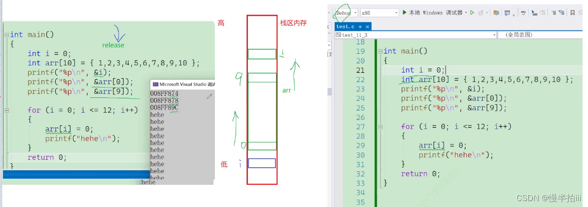 最后:在栈区空间中,默认是先使用高地址,再使用低地址,具体看实现环境。