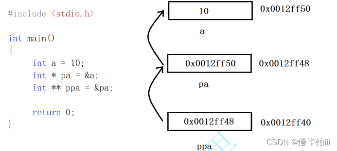 }指针变量也是变量,是变量就有地址,那指针变量的地址存放在哪⾥?