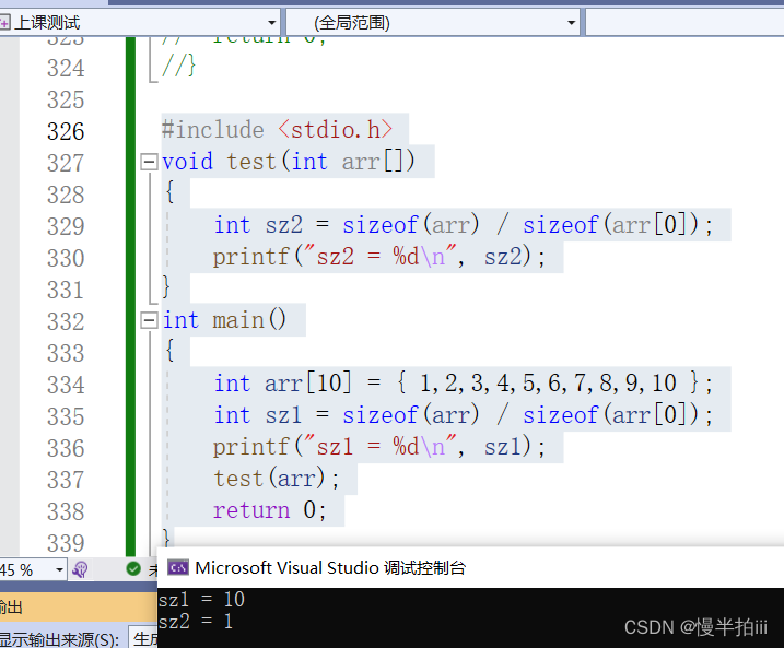 我们发现在函数内部是没有正确获得数组的元素个数。