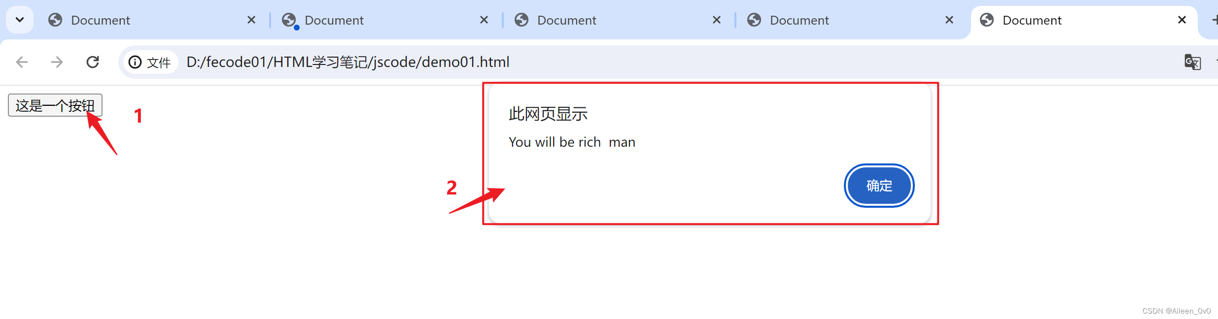 <input type="button" value="这是一个按钮" onclick="alert('You will be rich man')">