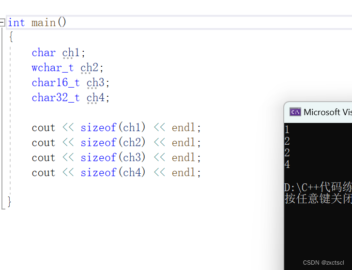 cout << sizeof(ch4) << endl;