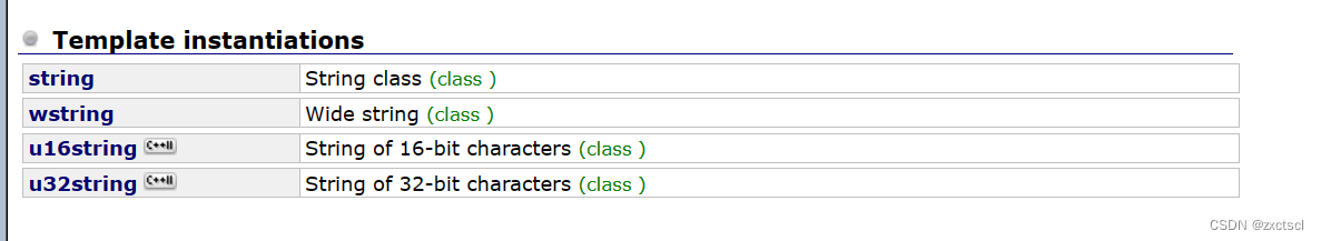 看到string里面还有Template instantiations: