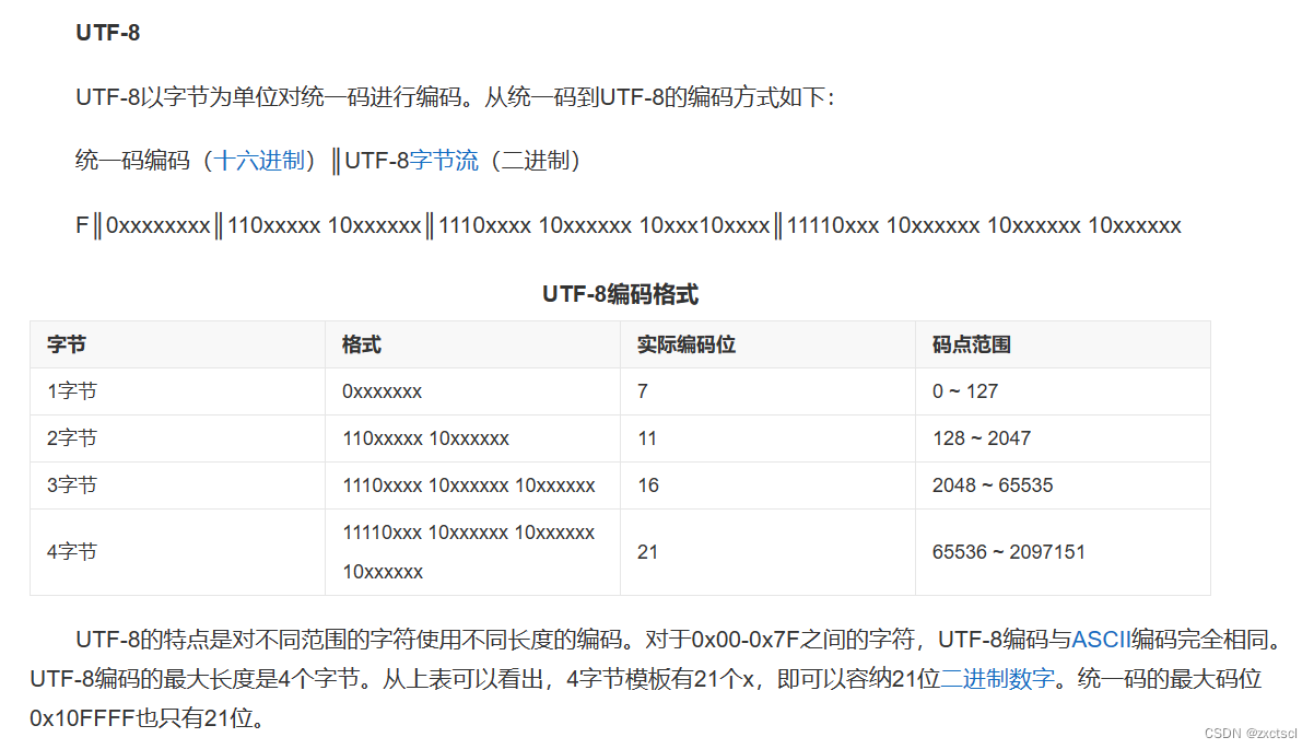 在统一码中,汉字“字”对应的数字是23383。在统一码中,我们有很多方式将数字23383表示成程序中的数据,包括:UTF-8、UTF-16、UTF-32。UTF是“UCS Transformation Format”的缩写,可以翻译成统一码字符集转换格式,即怎样将统一码定义的数字转换成程序数据。