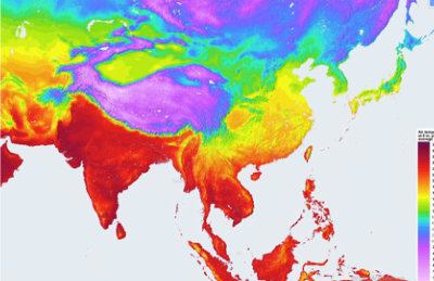 比如,CO2增加引起全球变暖,随之而来的海表面温度增加和海平面增高已引起人们的普遍关注。下图就是通过红外遥感对于全球海表面温度的观测。