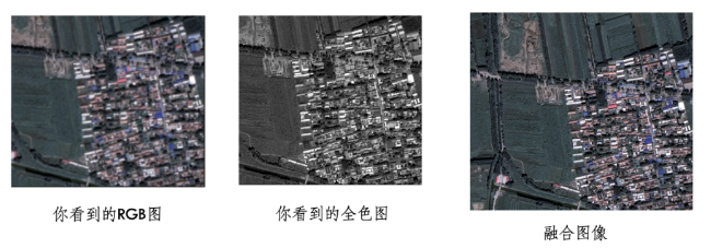 实际操作中,我们经常将全色图像与多波段图像融合处理,得到既有全色图像的高分辨率,又有多波段图像的彩色信息的图像。