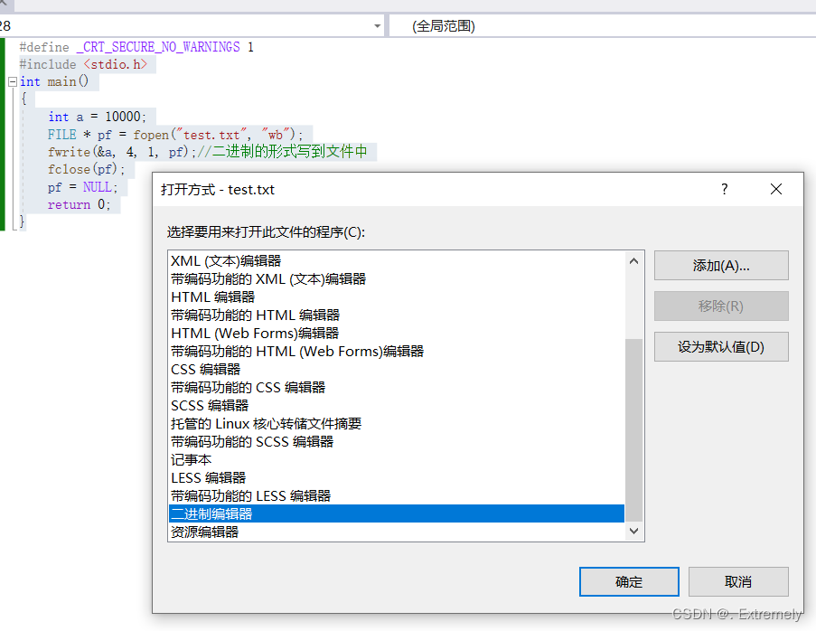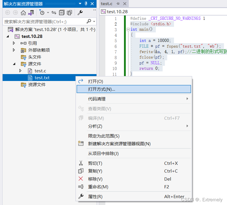 下面我们用vs2021来测试一下: wb是二进制写文件的意思,我们下面会学习到