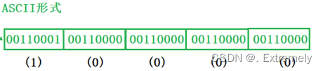 字符⼀律以ASCII形式存储,数值型数据既可以⽤ASCII形式存储,也可以使⽤⼆进制形式存储。 例如: 如有整数10000,如果以ASCII码的形式输出到磁盘,则磁盘中占⽤5个字节(每个字符⼀个字节),⽽⼆进制形式输出,则在磁盘上只占4个字节 1作为字符,它的ASCII码值是49,所以1为00110001,同理得0为00110000