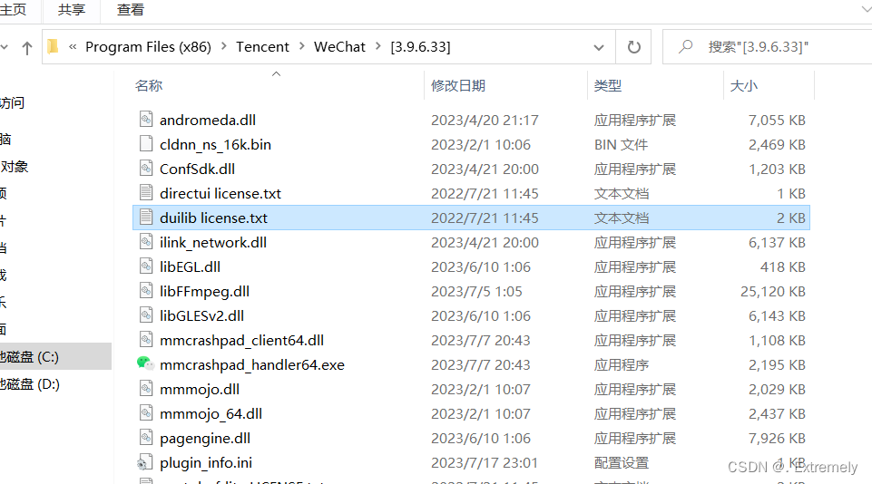 C:\Program Files (x86)\Tencent\WeChat\[3.9.6.33]\duilib license.txt存储地址如下