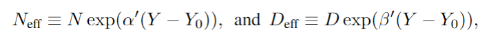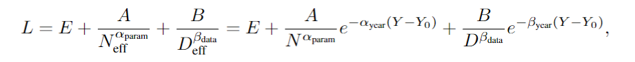 其中的Y表示年份,前面的系数表示进展率,代入上面的缩放定律,可以得到:
