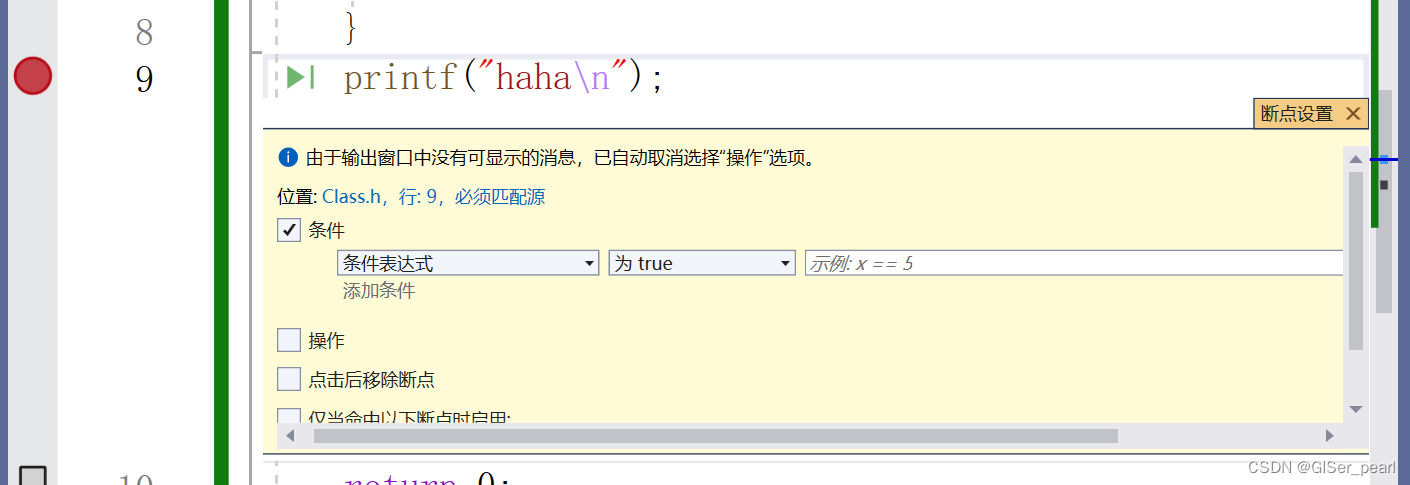 我们可以对断点进行各种各样的操作,比如让它满足某个条件才执行。