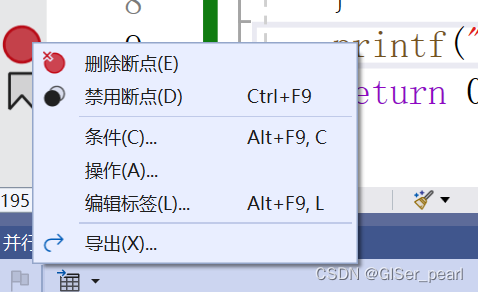 值得一提的是,还可以对断点进行编辑。右击断点,点击操作: