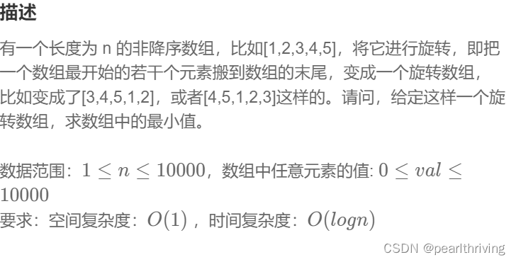 return nums[0];//如果经过上述步骤后,左指针的值仍然小于或等于右指针的值,这意味着整个数组可能是已经排序的(没有旋转),或者只有一个旋转点且该点的值与起始值相同。在这种情况下,我们只需返回起始元素