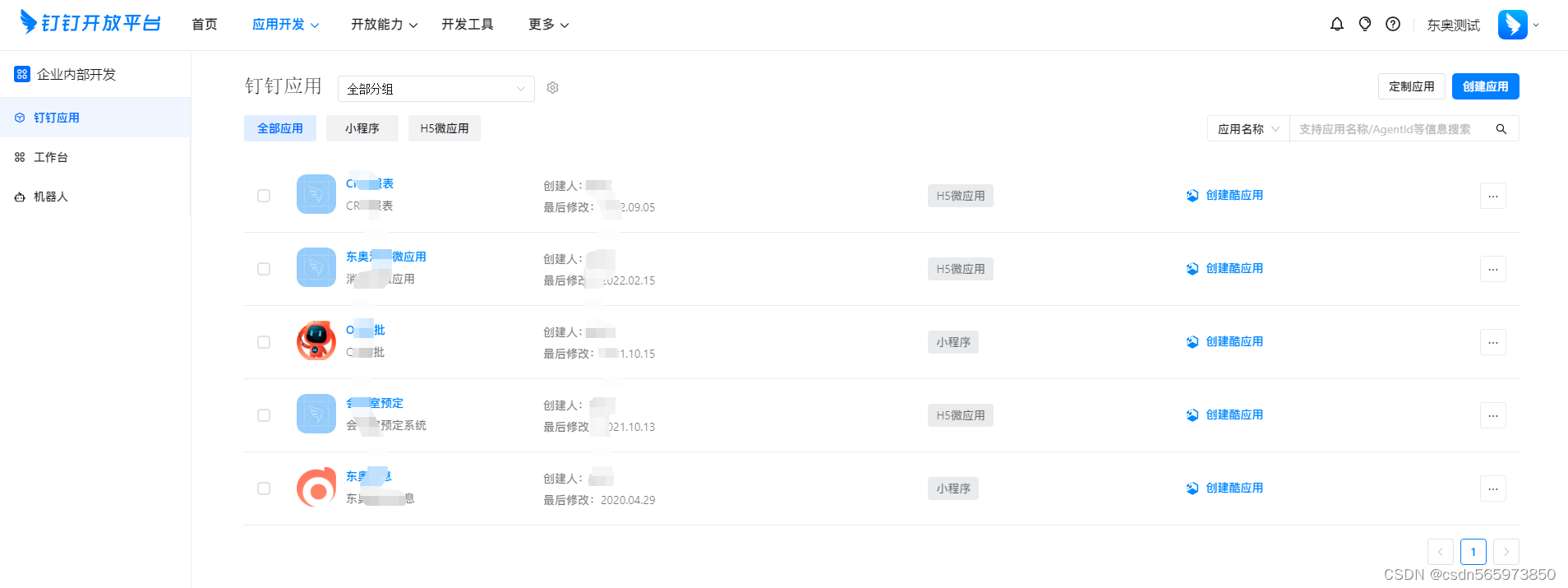 实现钉钉一键登录第三方网站,官方文档地址:实现登录第三方网站根据官方文档的操作步骤来看的话需要先到钉钉开发者后台添加H5微应用,钉钉开发者后台地址:钉钉开发者后台进入钉钉开发者后台后,