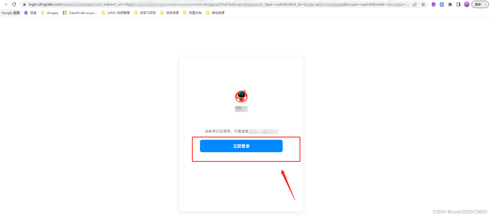 </dependency>那么到这里整个关于钉钉一键授权登录的页面代码以及后台逻辑代码也就写完了,下面看一下一键登录的效果