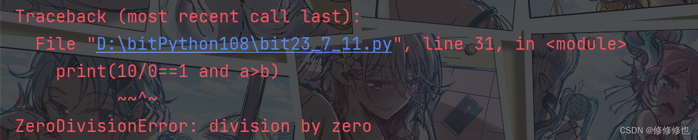 print(10/0==1 and a>b)运行结果就会抛出异常: