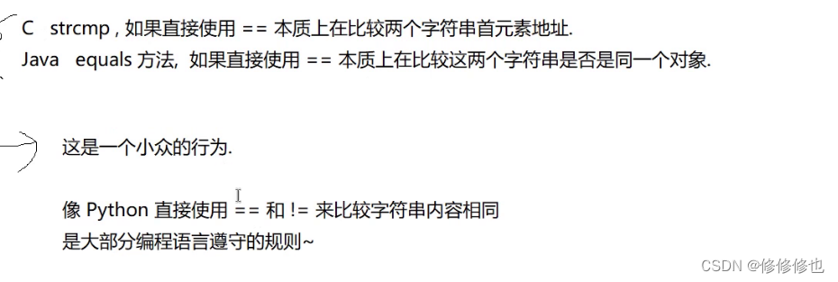关于字符串能否使用==/!=来比较: