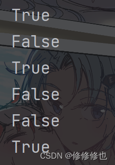 print(a!=b)运行结果: