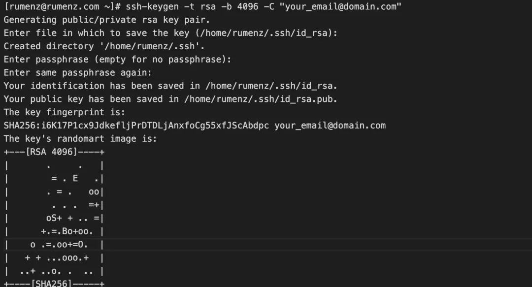 以下命令将生成一个新的 4096 位 SSH 密钥对,并将你的电子邮件地址作为注释: