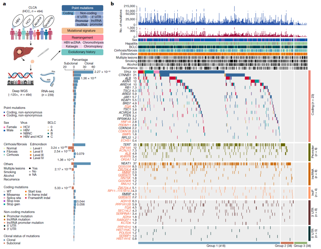 前面推文介绍过文章 Deep whole-genome analysis of 494 hepatocellular carcinomas,详情见:中国人肝癌全基因组项目。