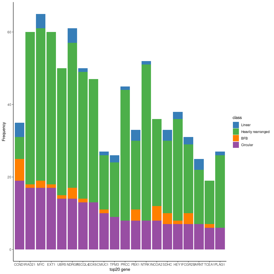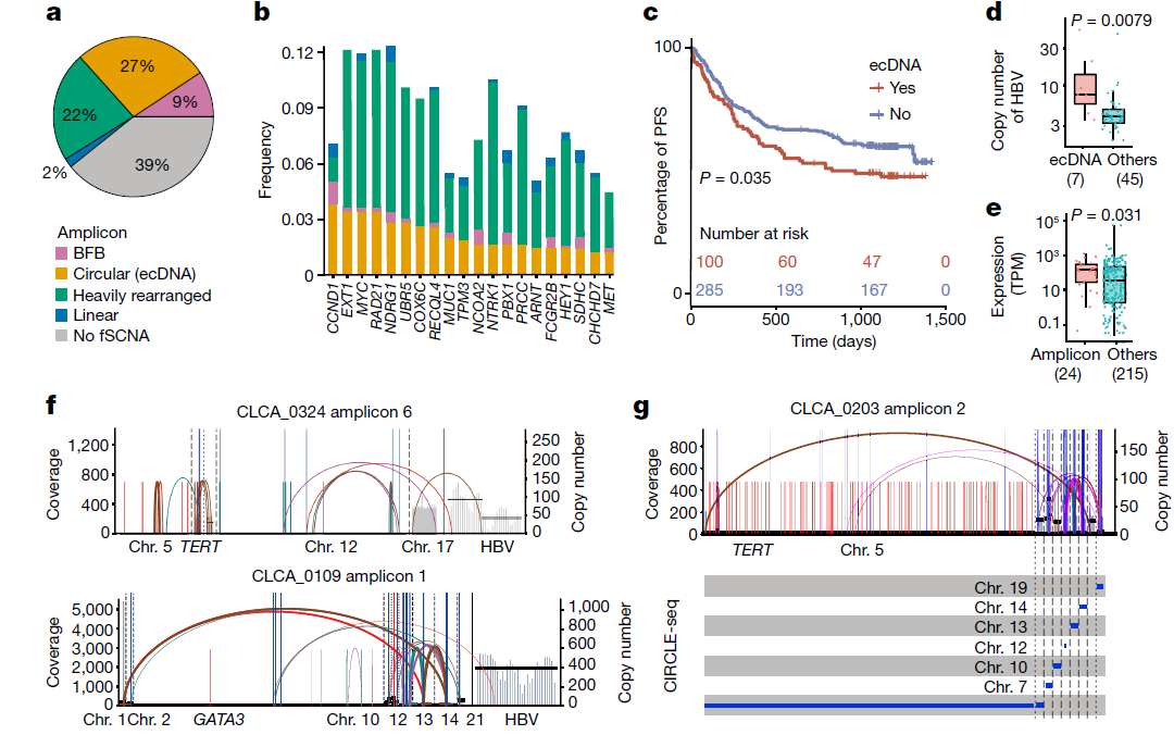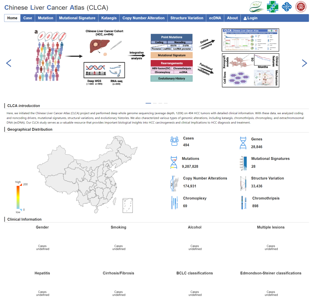 该项目包含494个肝癌病人的 WGS分析结果。作者在文章附件上传了部分数据,同时构建了网页数据库供读者使用。因对文章结果感兴趣,因此从文章附件和网页数据库:http://lifeome.net:8080/clca/#/下载了部分数据进行文章图表重现,数据包括:病人的临床信息、体细胞突变结果,突变特征、拷贝数变异、结构变异、ecDNA等。因为方法上的差异,所以重现结果无法做到和原文一致,如有差异,请以原文分析结果为准。