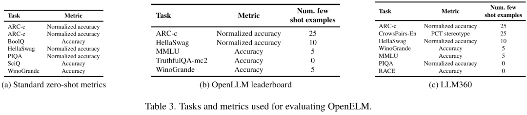 本文评估了 OpenELM 在零样本和少样本设置下的性能,如表 3 所示。研究者将 OpenELM 与公开的 LLM 进行了比较,其中包括 PyThia 、Cerebras-GPT 、TinyLlama 、OpenLM 、MobiLlama 和 OLMo 。与本文工作较为相关的是 MobiLlama 和 OLMo。这些模型都是在类似的数据集上训练的,具有相似或更多的预训练 token。