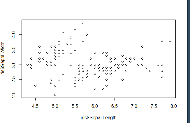 plot(iris$Sepal.Length,iris$Sepal.Width)