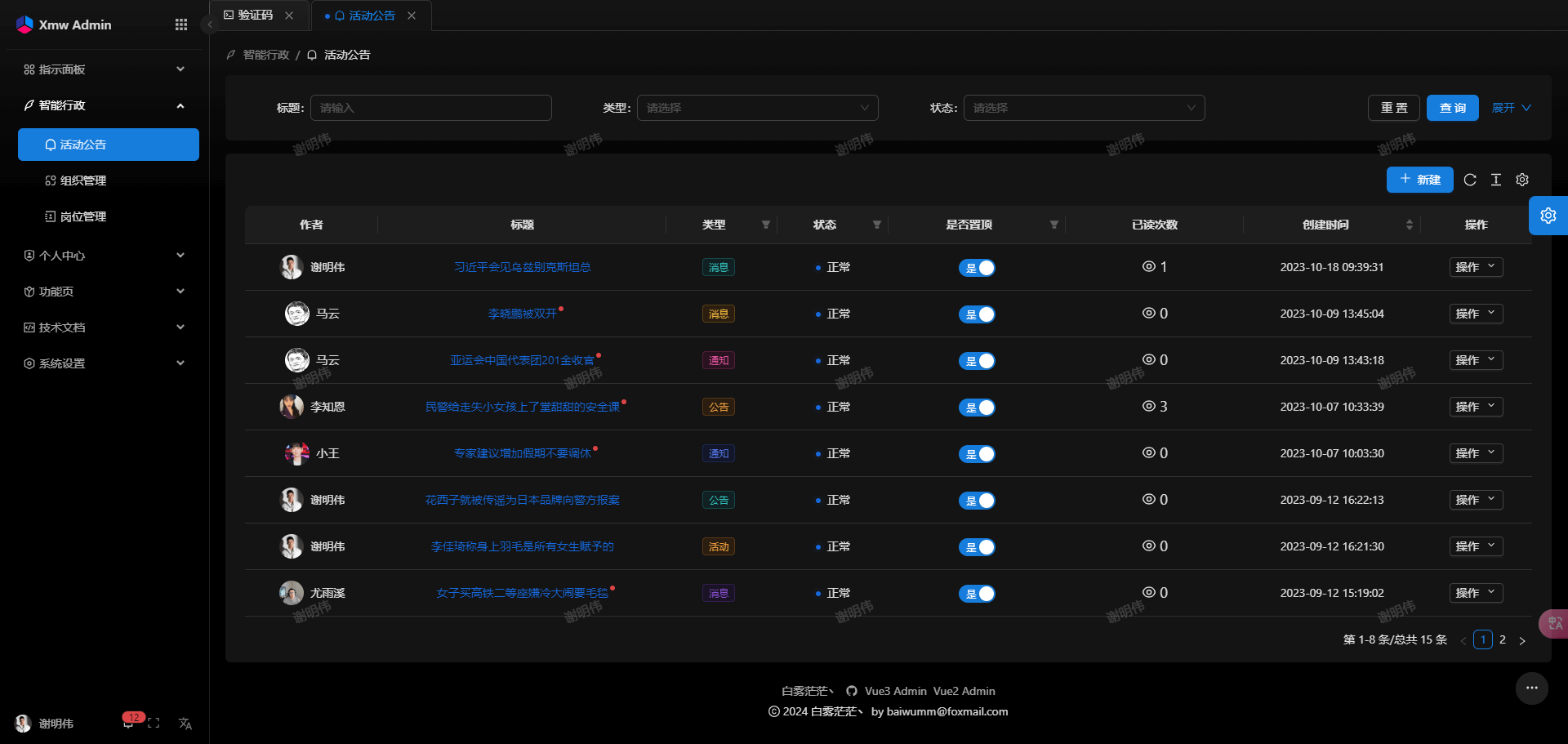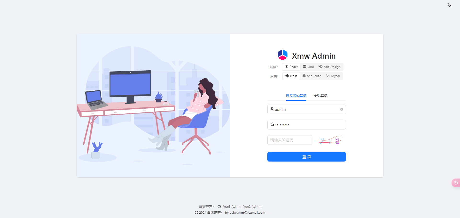 1、 安装 Mysql 并导入 /mysql/xmw_admin.sql 文件,修改 /Xmw_server/.development.env 文件中的数据库配置,这一步要保证成功,不然后端服务起不来