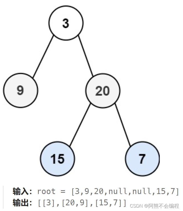 给你二叉树的根节点 root ,返回其节点值的 锯齿形层序遍历 。(即先从左往右,再从右往左进行下一层遍历,以此类推,层与层之间交替进行)。