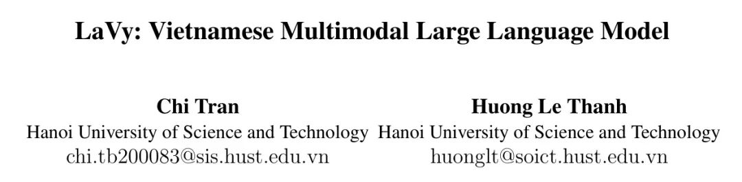 大规模语言模型(LLMs)和多模态大规模语言模型(MLLMs)以其在复杂推理和语言理解方面的卓越能力在全球范围内引起了轰动。 尽管有关越南大型语言模型的研究成果层出不穷,但多模态方面高质量资源的缺乏限制了越南MLLMs的发展。在本文中,作者首次通过引入LaVy,这是一个先进的越南MLLM,来解决这一问题。同时,作者还介绍了专门用于评估MLLMs在越南视觉语言任务上理解能力的LaVy-Bench基准。 关注公众号,领取代码。