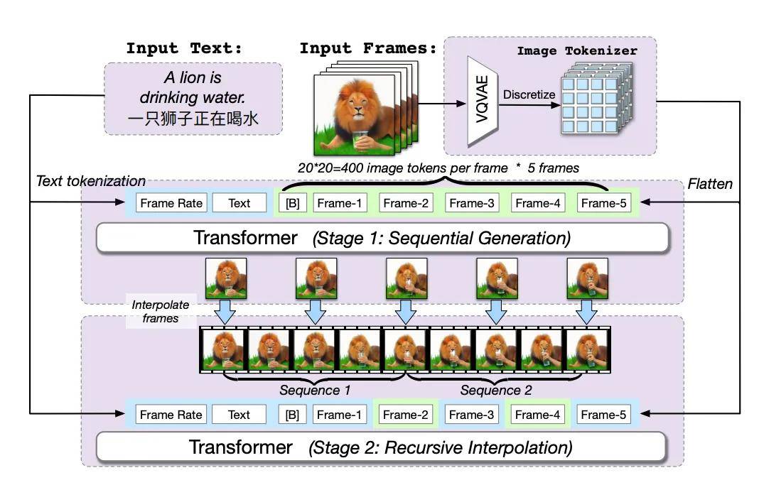 比如CogVideo采用的多帧率分层训练策略,提出了一种基于递归插值的方法,即逐步生成与每个子描述相对应的视频片段,并将这些视频片段逐层插值得到最终的视频片段,赋予了CogVideo控制生成过程中变化强度的能力,有助于更好地对齐文本和视频语义,实现了从文本到视频的高效转换。