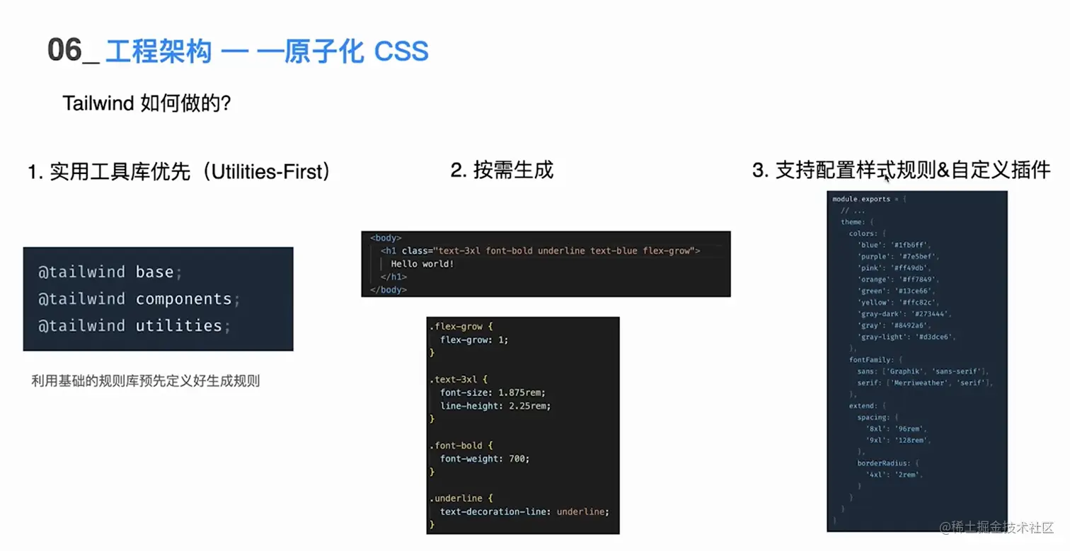 原子化CSS是一种CSS编写方式,旨在通过使用单个CSS属性的小类(即“原子”)来构建样式,使得样式表更加可复用和易于维护。这些小类通常包含了单一的样式规则,并根据需要进行组合。
