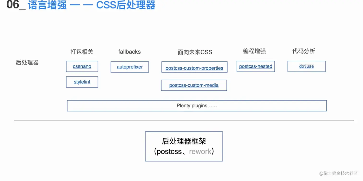 PostCSS是一个用JavaScript编写的工具,它可以在CSS代码被浏览器解析之前对其进行转换和处理。PostCSS可以扩展CSS语言,使其更加强大、灵活、易于维护。