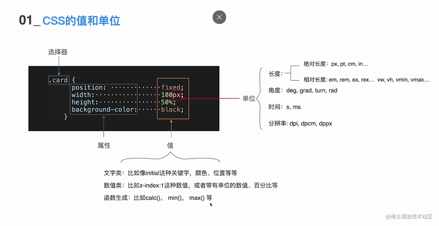 px(像素) | 一个基本的屏幕上的点,通常用于定义元素的具体大小。 |