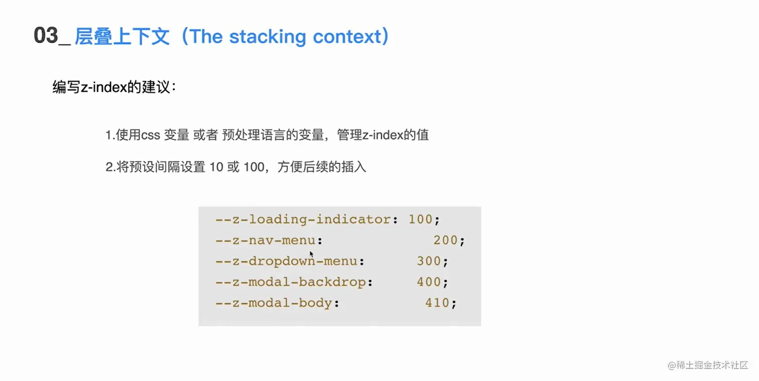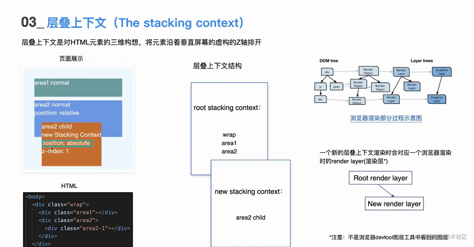 CSS层叠上下文(CSS Stacking Context)是CSS rendering的一个重要概念,它定义了元素如何根据z-index属性进行层次叠加。