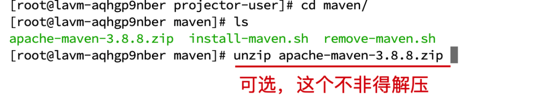 [root@lavm-aqhgp9nber maven]# unzip apache-maven-3.8.8.zip
