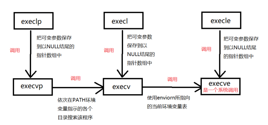 exec开头的函数总共有6种,统称exec函数族,下面着重介绍exec函数族种中重要的几个函数原型。