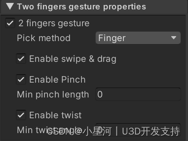 Pick method:Finger / Average 拾取的方法。Finger,只有两指都在物体上,才触发事件。Average,当两指连线位于物体上,便会触发