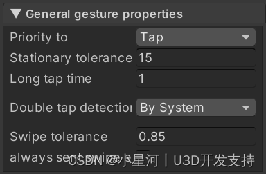 Double tap detection:双击事件设定,即点击两次时间间隔设置或者采用系统默认双击