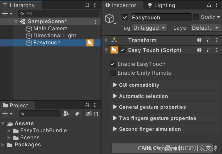 该物体也可以不用创建,在运行时会自动创建。我们创建是为了自定义Easytouch的一些属性。