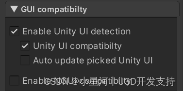 Enable Unity UI detection:是否允许UI检测,取消勾选,则直接透过UGUI,选择底下的物体