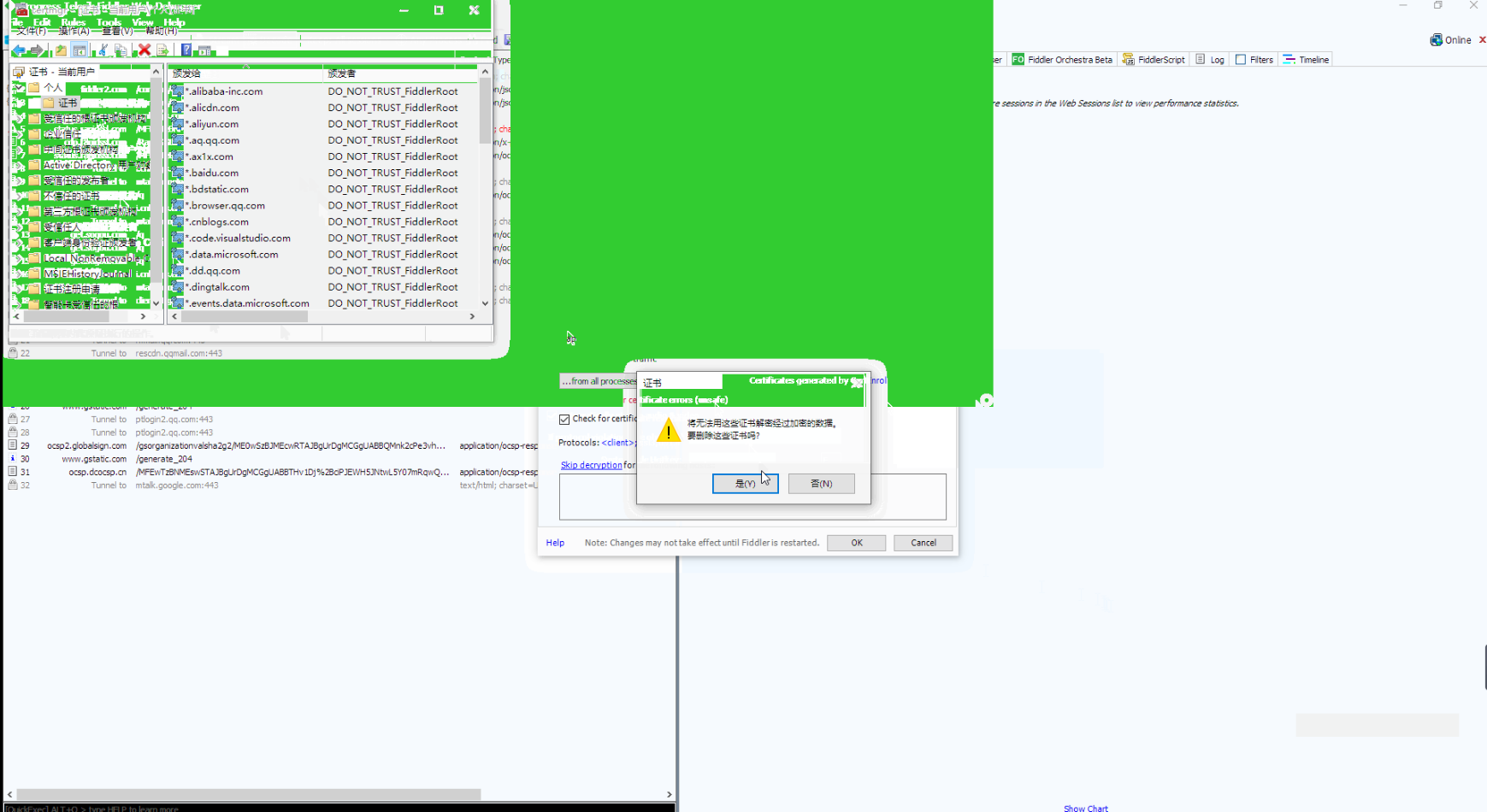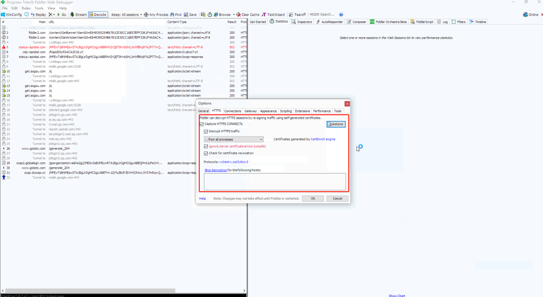 fiddler抓取https协议的时候提示This is a CONNECT tunnel, through which encrypted HTTPS traffic flows.,不过实际上其实是已经配置过证书的;
