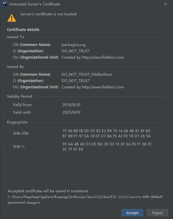 IDEA提示证书是不信任的,虽然不影响但是每次都出现有点烦