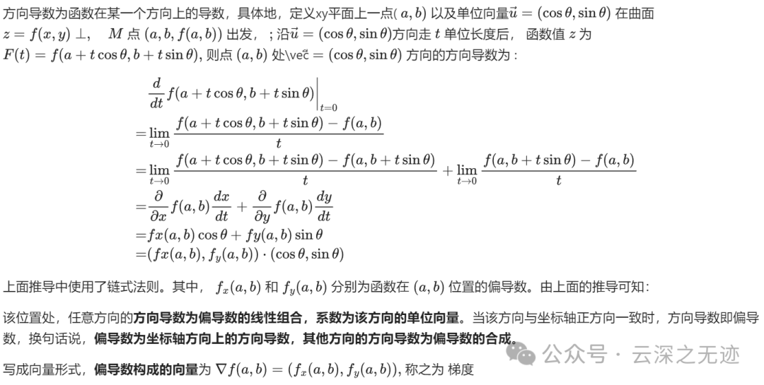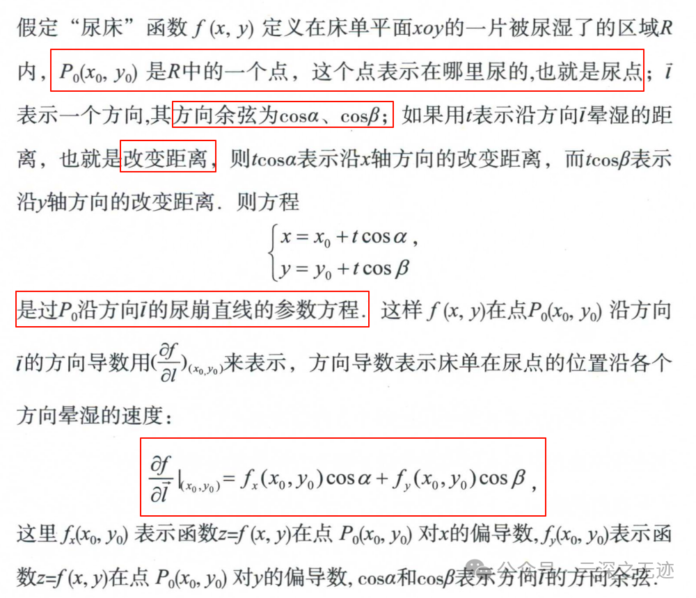 这段是一个推导,说明了方向导数是比偏导数更全面的定义方式,特定情况下可以变为偏导数。