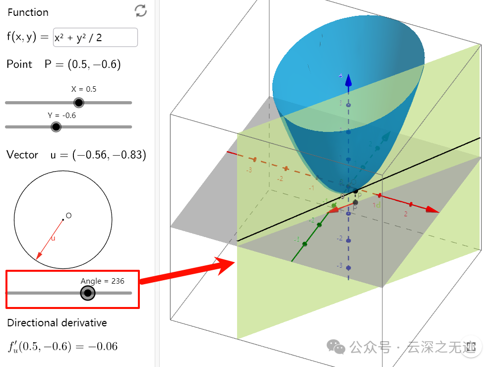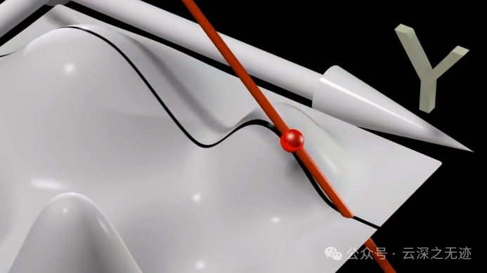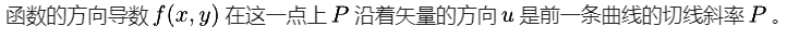 则为方向导数。如下图所示,点 𝑃 位置处红色箭头方向的方向导数为黑色切线的斜率