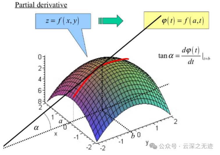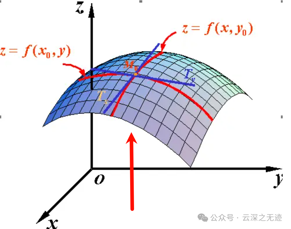 偏导数,那就至少涉及到两个自变量,以两个自变量为例,z=f(x,y) . 从导数到偏导数,也就是从曲线来到了曲面. 曲线上的一点,其切线只有一条。但是曲面的一点,切线有无数条。