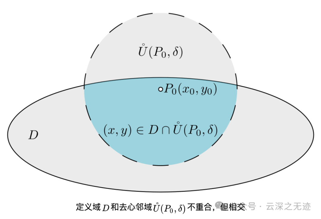 事实上,二元函数的定义域和去心不完全重合,但是一定是相交,就是说有可能画了一个圈正好一部分在外面漏着,其实这个定义在补足这个缺陷,妈耶。
