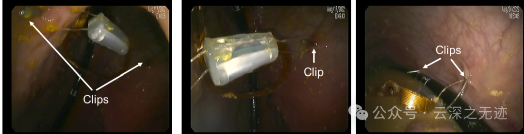 MiGUT 设备放置在胃中时,可以检测到近距离内重要器官的电活动。该设备可以记录高质量的生物电位信号,包括胃慢波、呼吸频率和心电图,以及与大型动物模型中的迁移肌电复合体相关的假定信号。还可以使用内窥镜夹将该设备暂时固定在胃粘膜上,以在多天内测量和无线传输进食、睡眠和活动期间的胃慢波信号。