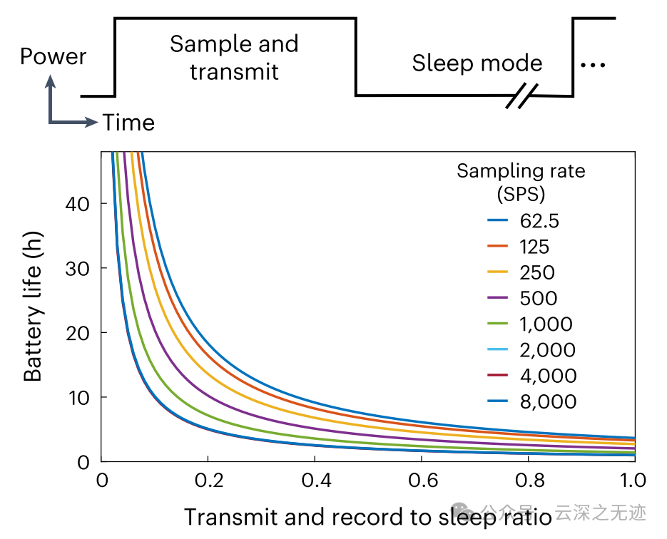 考虑到续航,可以看到不同采样率下的电池寿命